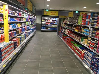 Mit dem Abriss eines ehemaligen Getränkemarktes wurde das Parkplatzangebot erweitert und die Verkaufsfläche mit bodentiefen Fensterelementen an der Giebelseite, neuen Bodenfliesen, LED-Beleuchtung, neuer Gebäudetechnik von Grund auf modernisiert.