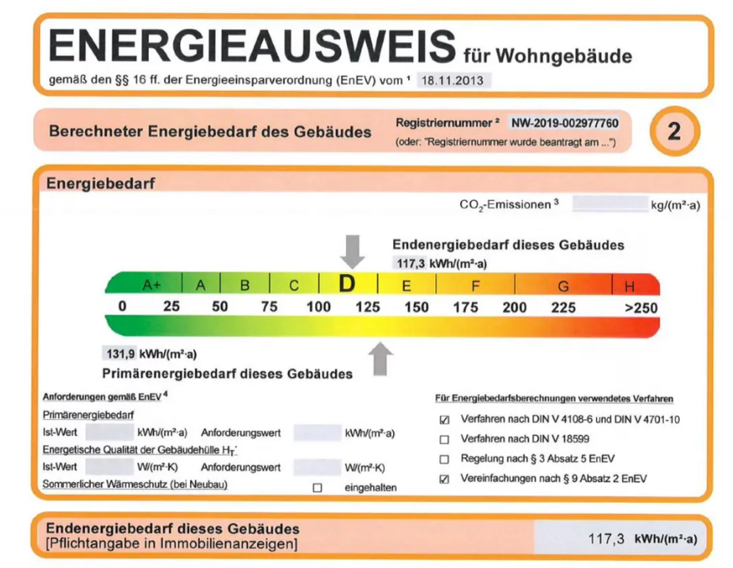 Es liegt ein Energieausweis mit folgenden Daten vor: